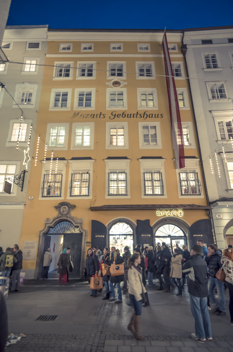 잘츠부르크의 가장 중요한 여행지로 볼프강 아마데우스 모차르트는 중심 쇼핑가인 게트라이데 거리 9번지에 있는 당시 중산층이 거주하던 황색 건물 3층에서 1759년에 태어나서 17세까지 살았다. 어릴 때의 작품은 거의 모두가 이곳에서 작곡되었다.
